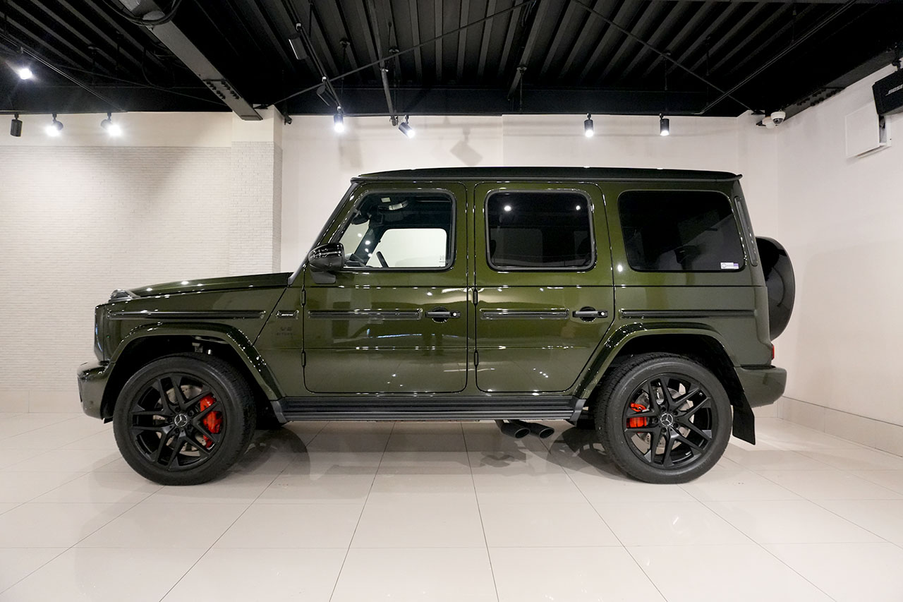 Gクラス G63 MANUFAKTURプログラム+ AMGナイトパッケージ 21インチマットブラックAW MANUFAKTURオリーブメタリック